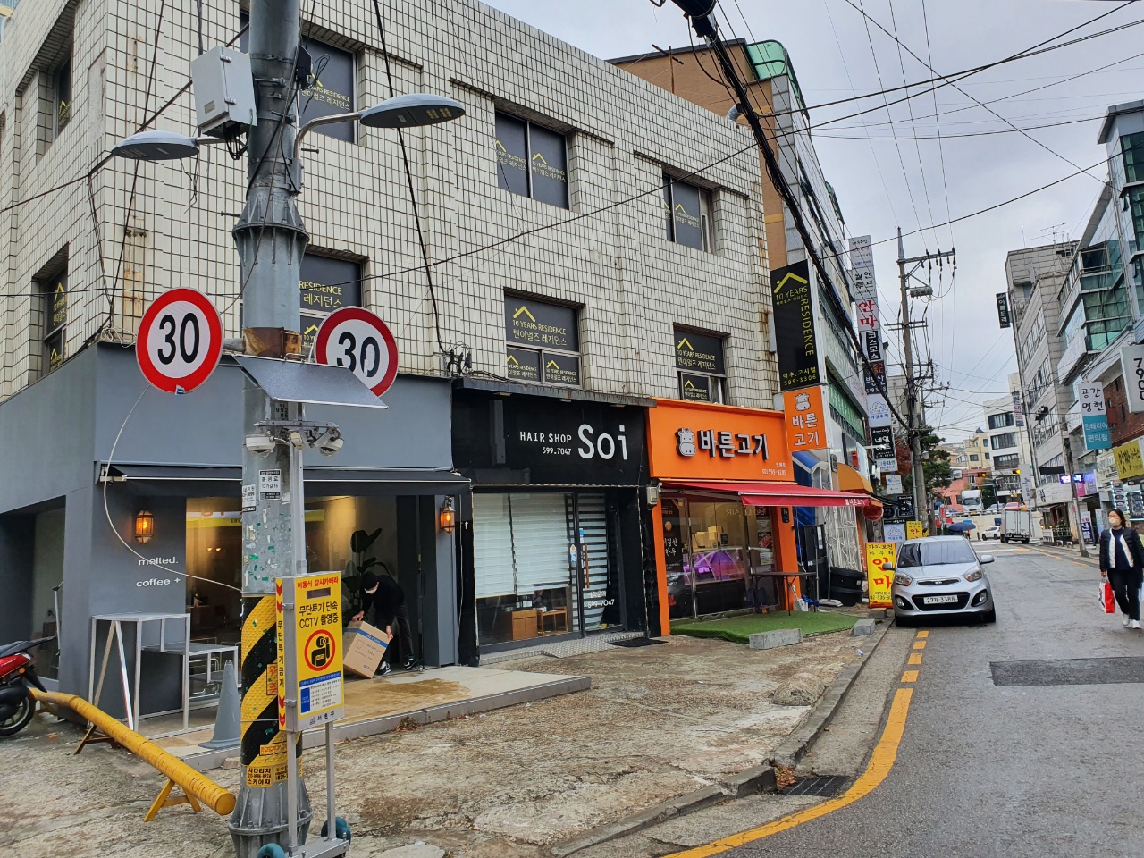 약 1분 가량 걸어가면 바른고기 가게가 나오고,