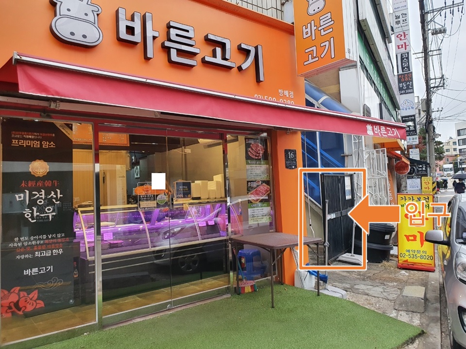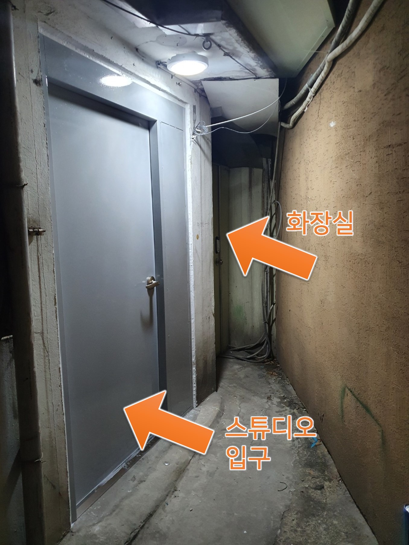 바른고기 오른쪽의 철문으로 들어오시면 스튜디오 입구가 보입니다.