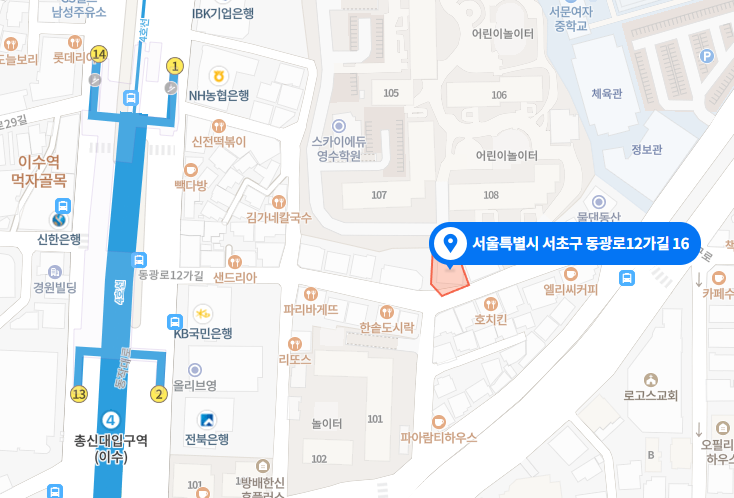 주차장이 협소하므로 이수역 근방의 공영주차장 이용을 권장드립니다.